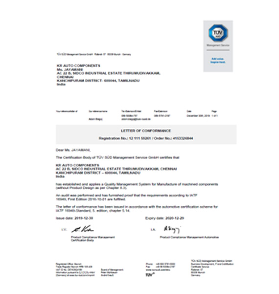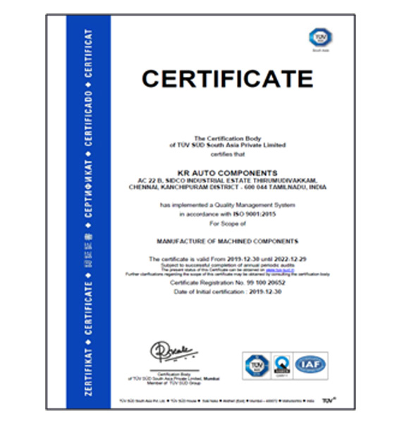 KR Auto Components, SIDCO, Industrial Estate, AC22B, Thirumudivakkam, Kanchipuram (dt), Chennai, Tamil Nadu.